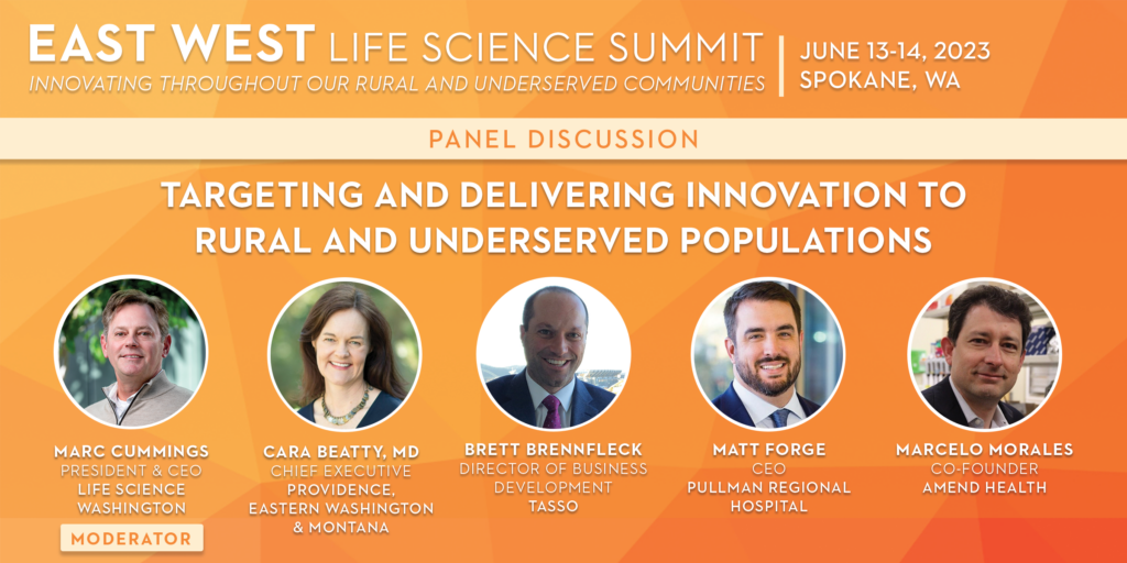 The East West Life Science Summit is an annual conference that fosters and strengthens the vibrant life science organizations, healthcare providers, and public institutions throughout Washington state. This year’s theme is Innovating Throughout Our Rural and Underserved Communities.