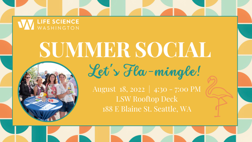Celebrate summer and get ready to “FLA-MINGLE” with LSW on our rooftop deck for this year’s Summer Social! Come dressed in your favorite tropical prints, linen shorts, or summer dresses on August 18 for a fun and relaxing evening of friends, food, and tasty beverages. This event is a great way to engage with our local life science community and build meaningful connections while enjoying fantastic views of Seattle. We hope to see you there!